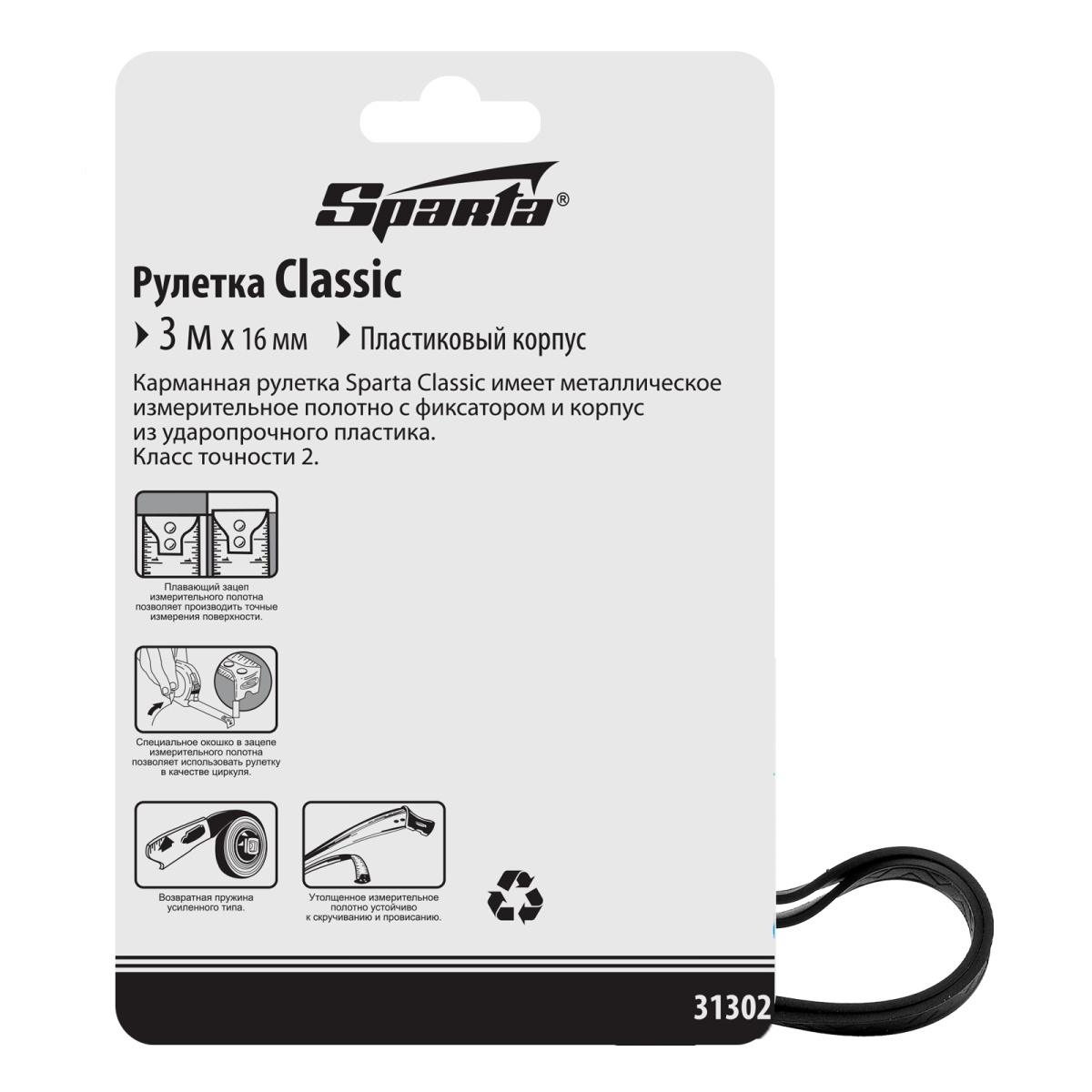 Купить Рулетка Classic,3 м х 16 мм,пластиковый корпус Sparta V6052 по лучшей цене с доставкой - интернет магазин №1 в России