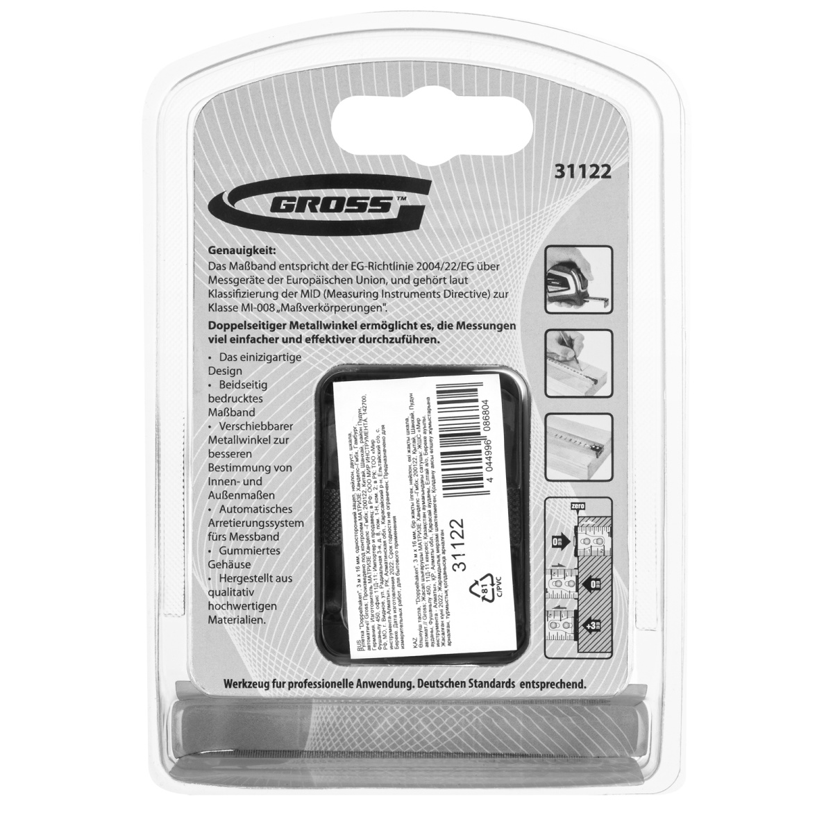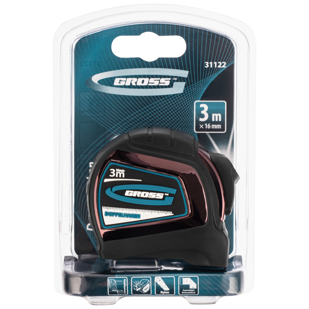 Купить Рулетка "Doppelhaken",3 м x 16 мм,односторонний зацеп,Нейлон,двусторонняя шкала,автоматическая фиксация Gross V6013 по лучшей цене с доставкой - интернет магазин №1 в России