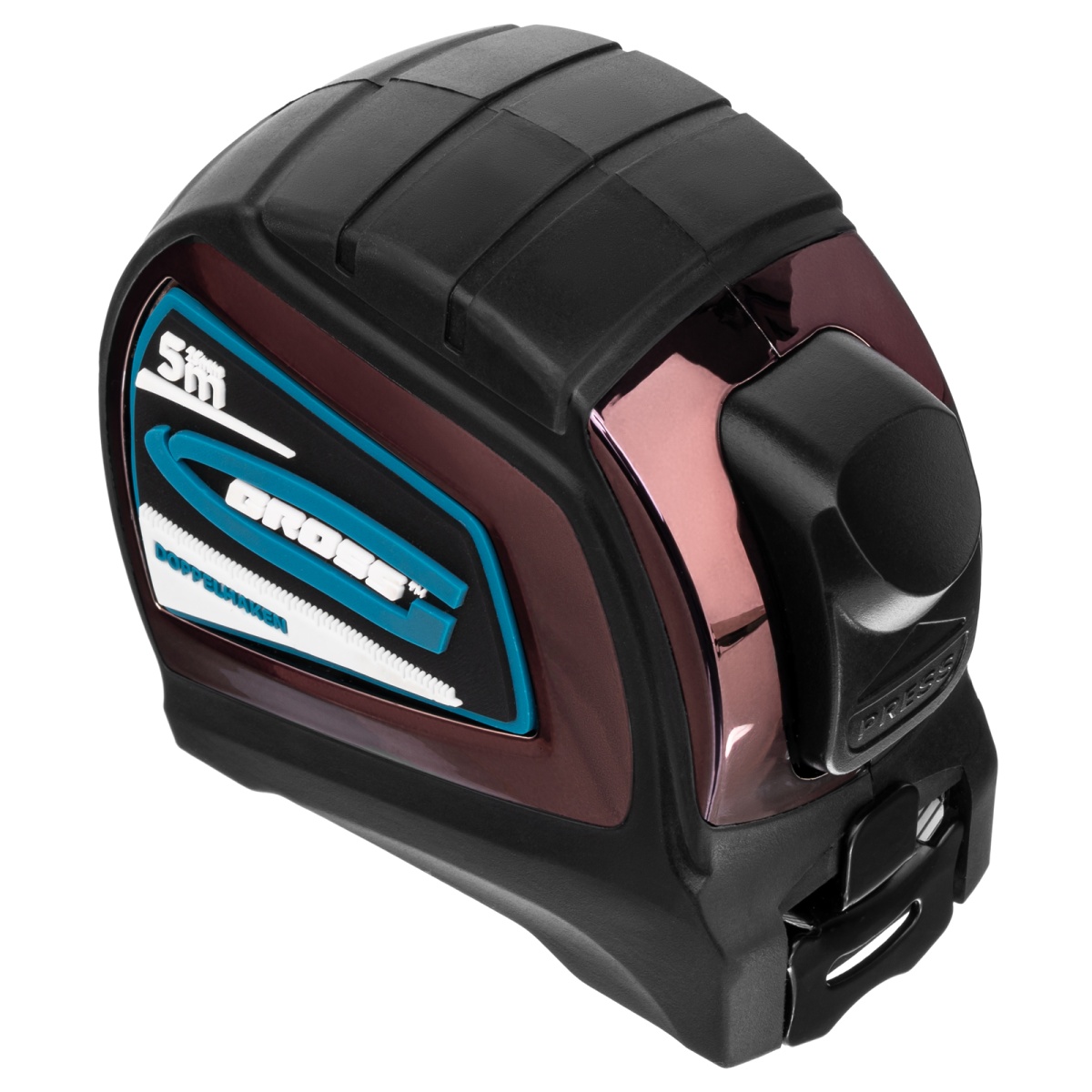 Наличие клапана для сброса давления Рулетка "Doppelhaken",5 м x 25 мм,двухсторонний зацеп,Нейлон,двусторонняя шкала,автоматическая фиксация Gross