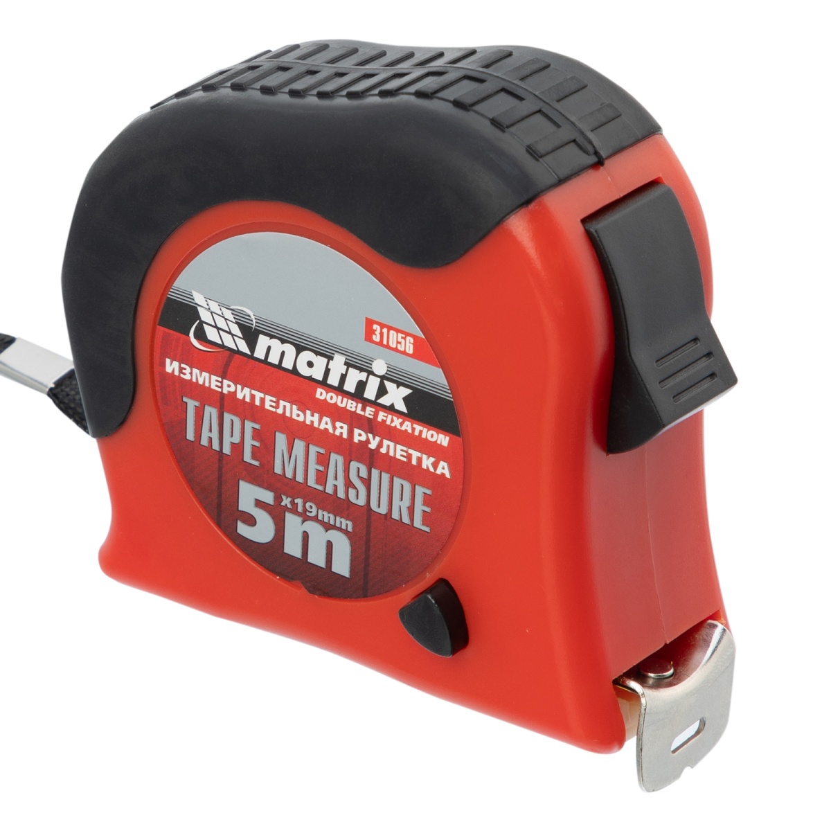 Рулетка Double fixation,5 м х 19 мм,обрезиненный корпус,двойная плавная фиксация Matrix