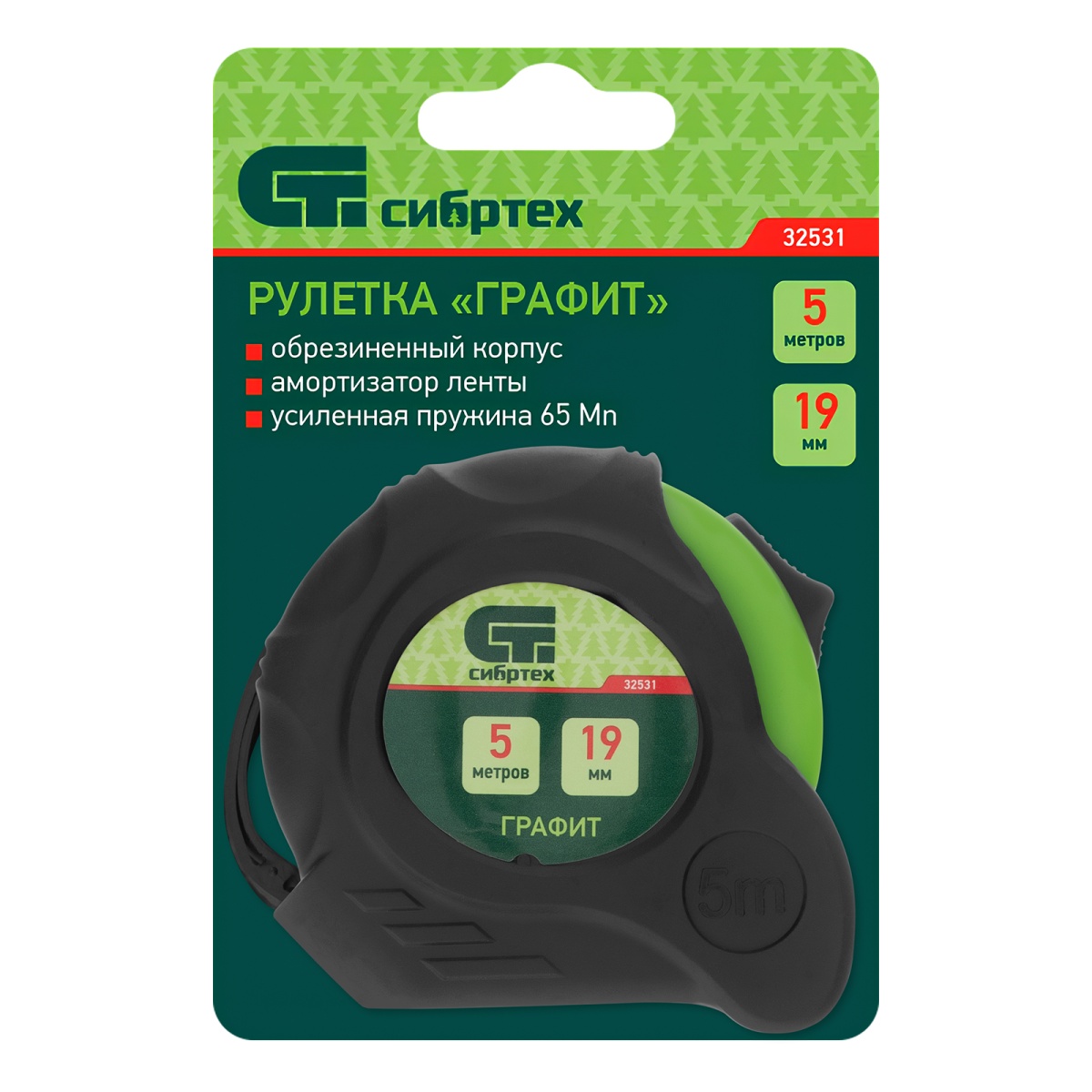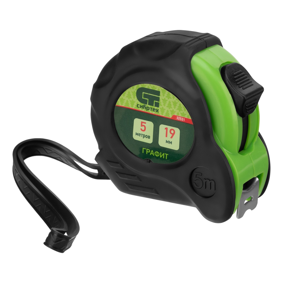 Купить Рулетка Графит,обрезиненный корпус,амортизатор,5 м х 19 мм Сибртех V6132 по лучшей цене с доставкой - интернет магазин №1 в России