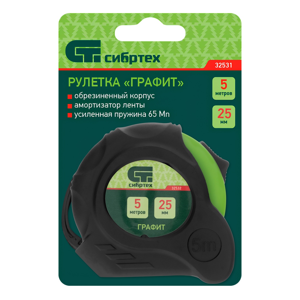 Купить Рулетка Графит,обрезиненный корпус,амортизатор,5 м х 25 мм Сибртех V6133 по лучшей цене с доставкой - интернет магазин №1 в России