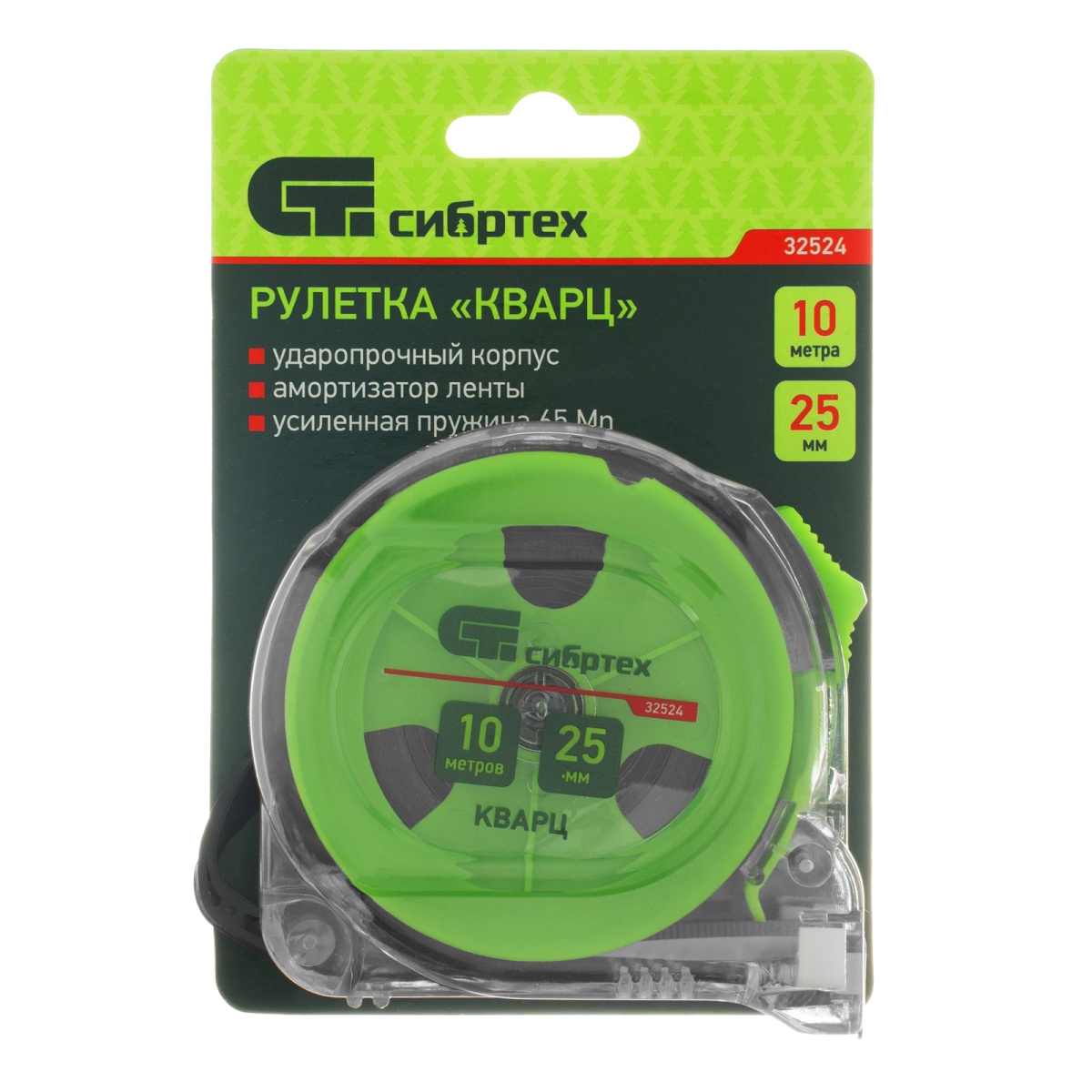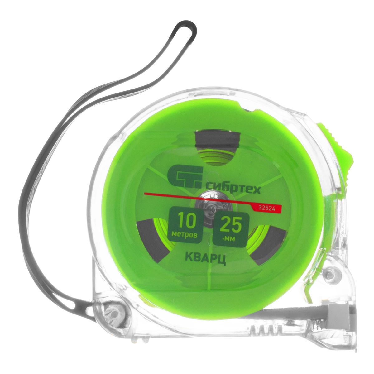 Купить Рулетка Кварц,прозрачный корпус,амортизатор,10 м х 25 мм Сибртех V6135 по лучшей цене с доставкой - интернет магазин №1 в России