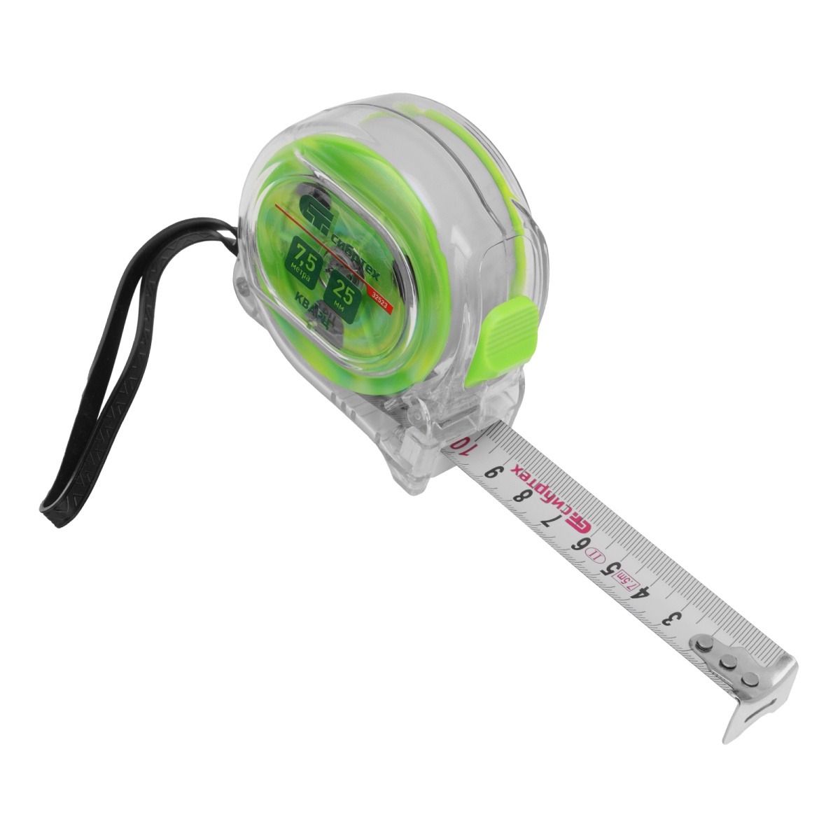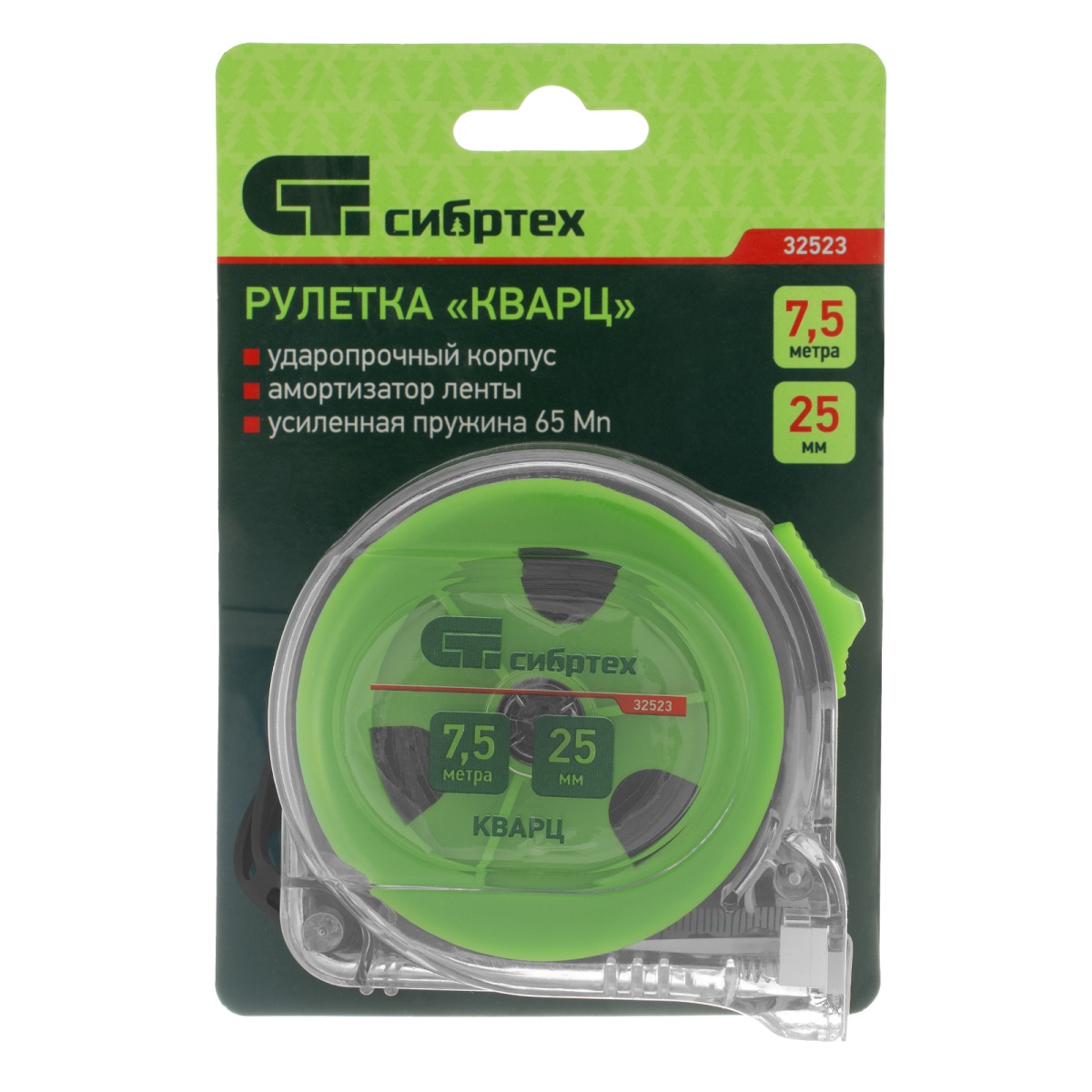 Купить Рулетка Кварц,прозрачный корпус,амортизатор,7,5 м х 25 мм Сибртех V6139 по лучшей цене с доставкой - интернет магазин №1 в России
