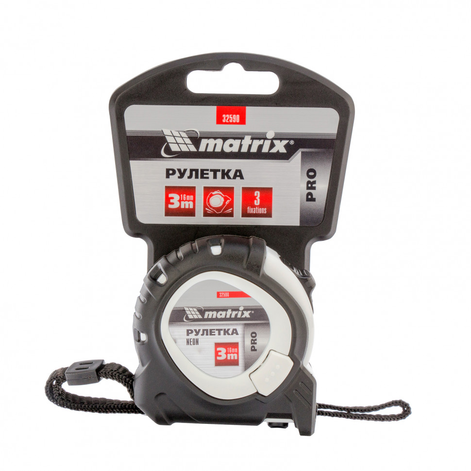 Купить Рулетка Neon,3 м x 16 мм,обрезиненный корпус,3 фиксации,Pro Matrix V6083 по лучшей цене с доставкой - интернет магазин №1 в России