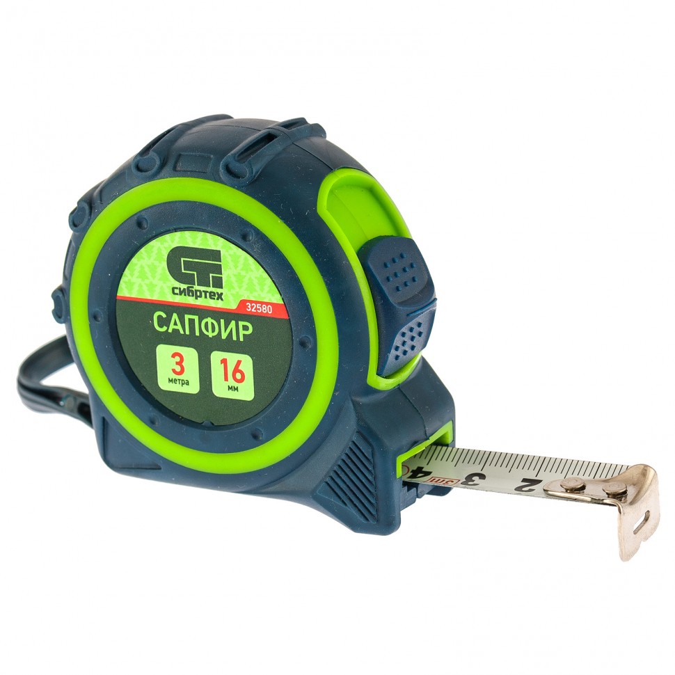 Купить Рулетка Сапфир,двухкомпонентный корпус,3 м х 16 мм Сибртех V6140 по лучшей цене с доставкой - интернет магазин №1 в России