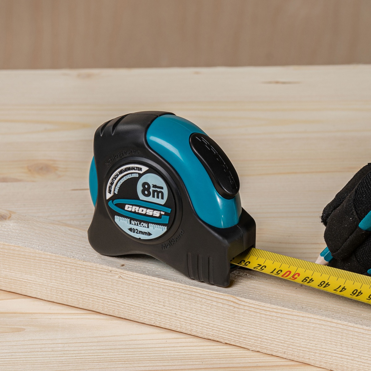 Купить Рулетка "Schlagfest",8 м x 25 мм,магнитный обрезиненный зацеп,двусторонняя шкала,Нейлоновое покрытие,автоматическая фиксация Gross V6024 по лучшей цене с доставкой - интернет магазин №1 в России