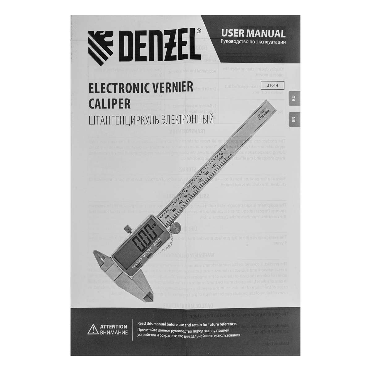 Купить Штангенциркуль, 150 мм, электронный, большой дисплей, с глубиномером Denzel V8014 по лучшей цене с доставкой - интернет магазин №1 в России