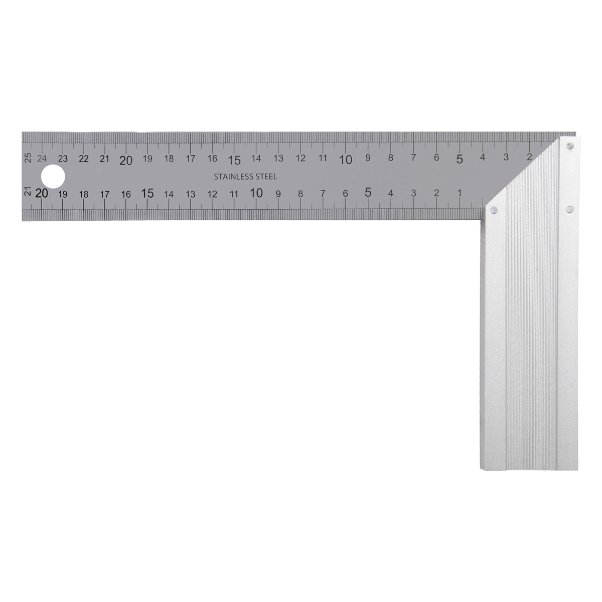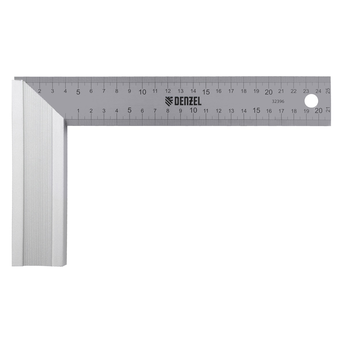 Купить Угольник стальной 250 мм, нержавеющая сталь, градуировка, алюминиевое основание Denzel V7308 по лучшей цене с доставкой - интернет магазин №1 в России