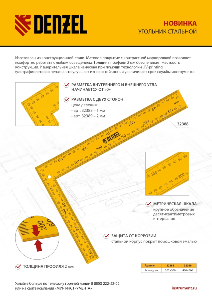 Купить Угольник стальной, 400 х 600 мм Denzel V7314 по лучшей цене с доставкой - интернет магазин №1 в России