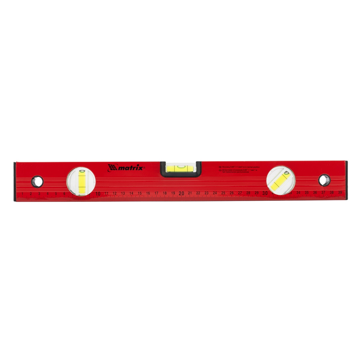Купить Уровень алюминиевый, 400 мм, 3 глазка, красный, линейка Matrix V7438 по лучшей цене с доставкой - интернет магазин №1 в России
