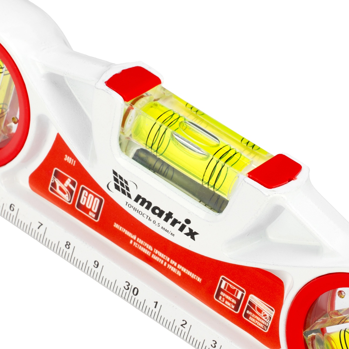 Купить Уровень алюминиевый литой, фрезерованный, 3 глазка, две ударные площадки, 600 мм Matrix V7400 по лучшей цене с доставкой - интернет магазин №1 в России