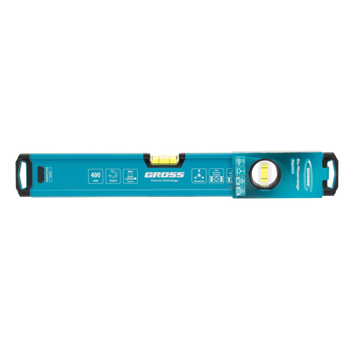 Купить Уровень алюминиевый, магнит., фрезерованный, 2 глазка, 0,5 мм/м, 400 мм Gross V7461 по лучшей цене с доставкой - интернет магазин №1 в России