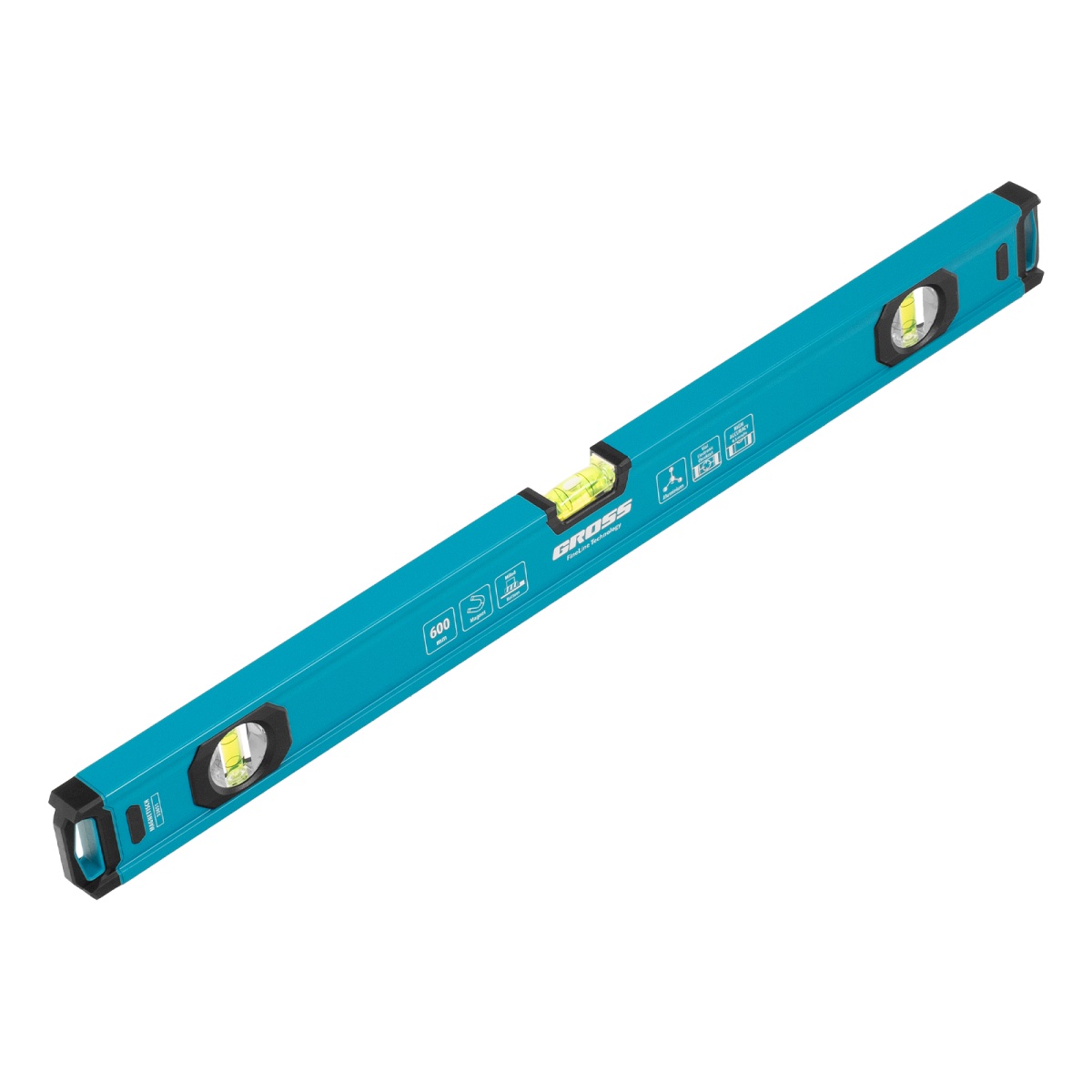 Купить Уровень алюминиевый, магнит., фрезерованный, 3 глазка, 0,5 мм/м, 600 мм Gross V7467 по лучшей цене с доставкой - интернет магазин №1 в России