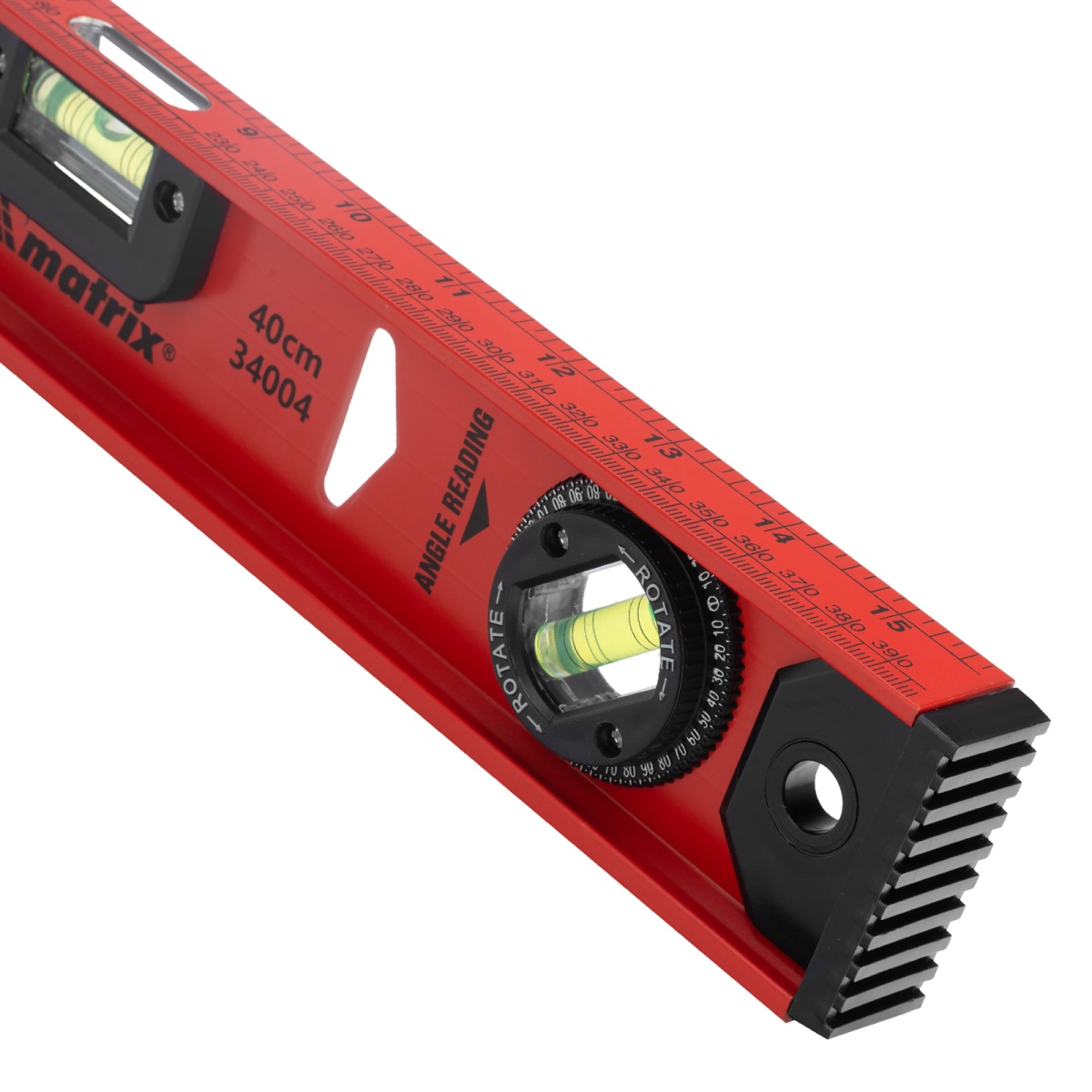 Купить Уровень алюминиевый "Рельс", 400 мм, 3 глазка, усиленный Matrix V7394 по лучшей цене с доставкой - интернет магазин №1 в России