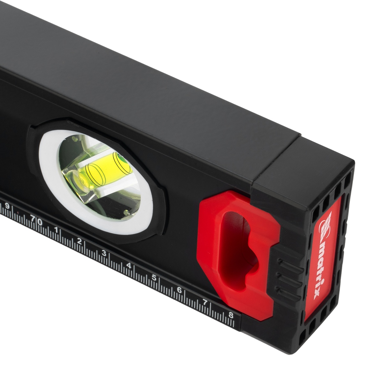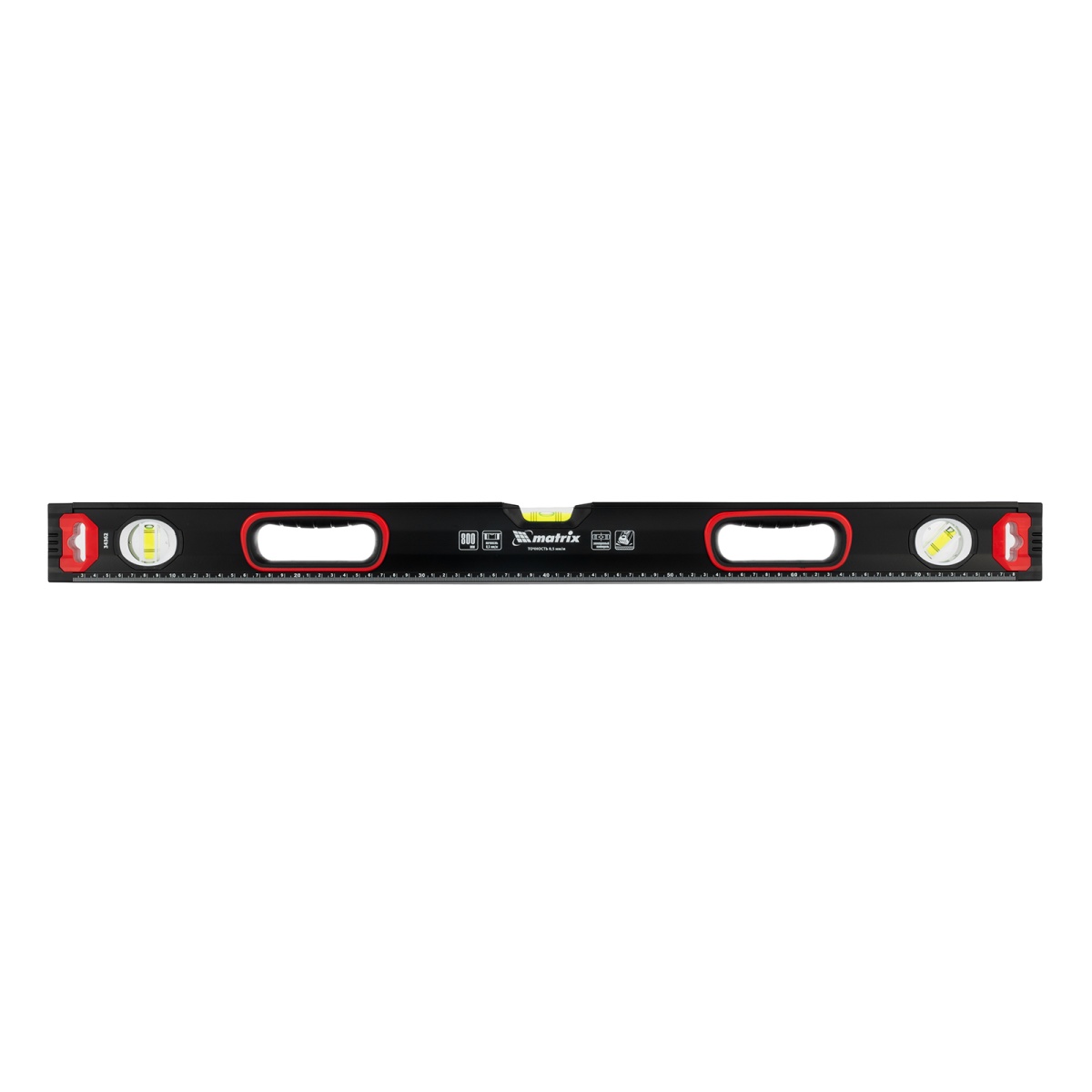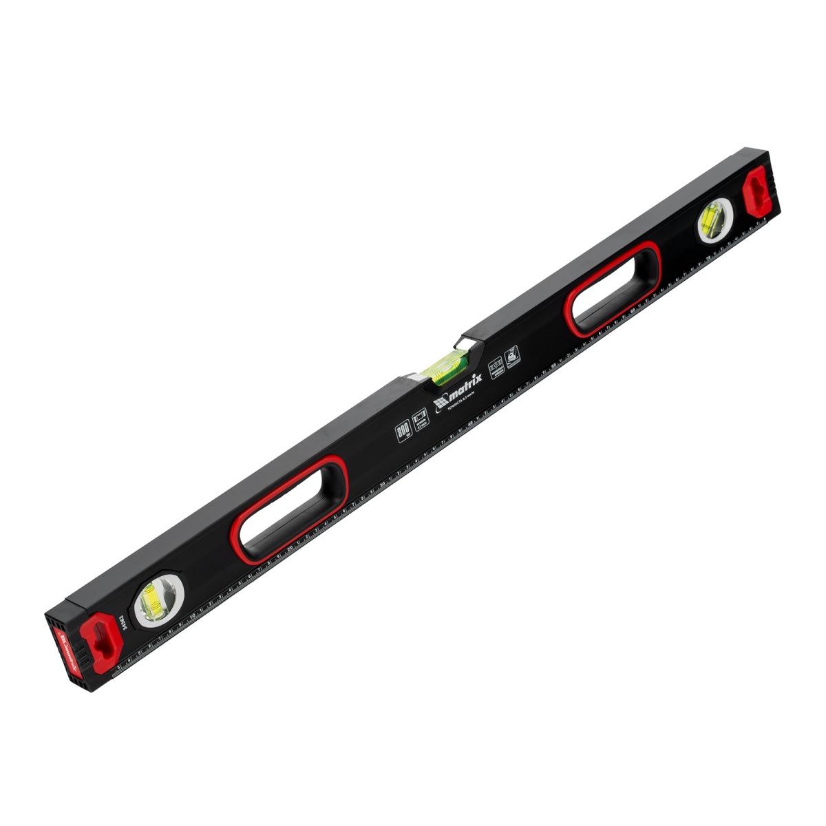 Купить Уровень алюминиевый, усиленный, фрезерованный, 3 глазка, двухкомпонентные рукоятки, 800 мм Matrix V7472 по лучшей цене с доставкой - интернет магазин №1 в России