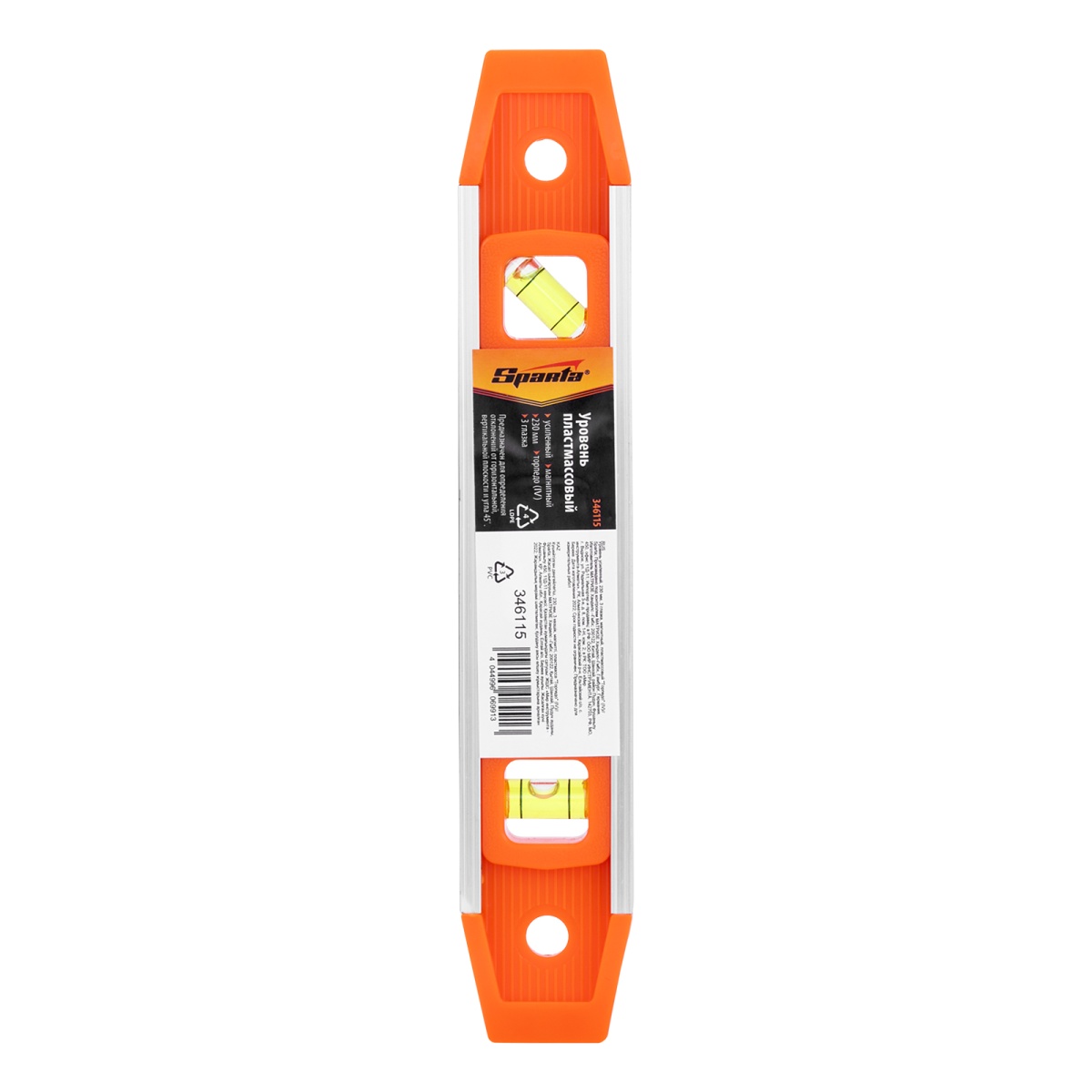 Купить Уровень усиленный, 235 мм, 3 глазка, пластмассовый "Торпедо" (IV) Sparta V7482 по лучшей цене с доставкой - интернет магазин №1 в России