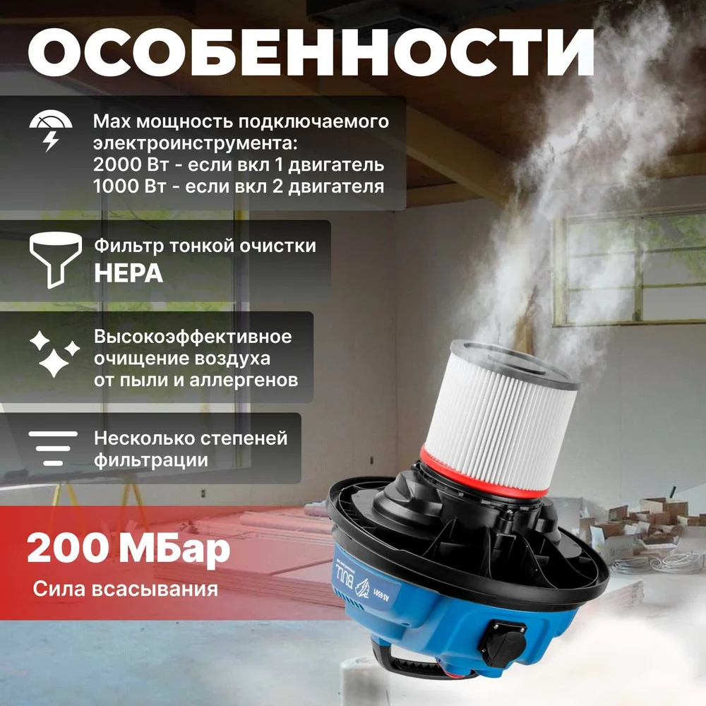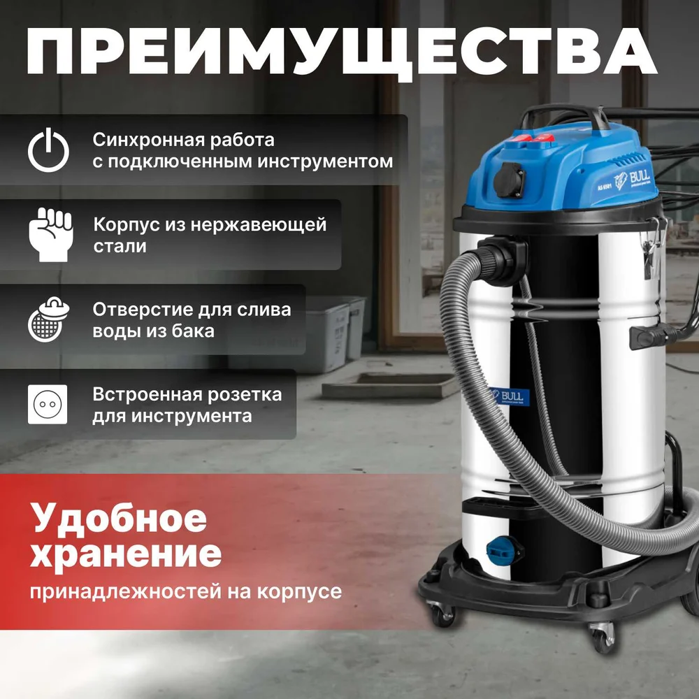 Купить Пылесос BULL AS 6501 + аксессуары 2x1200 Вт, 70 л, 6м кабель, 5м шланг, HEPA 1329490 по лучшей цене с доставкой - интернет магазин №1 в России