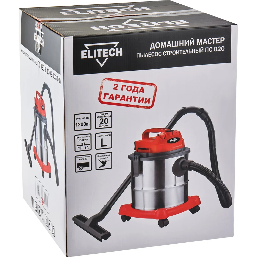 Купить Пылесос Elitech ПС 020 (E1302.003.00) ДМ 204040 по лучшей цене с доставкой - интернет магазин №1 в России