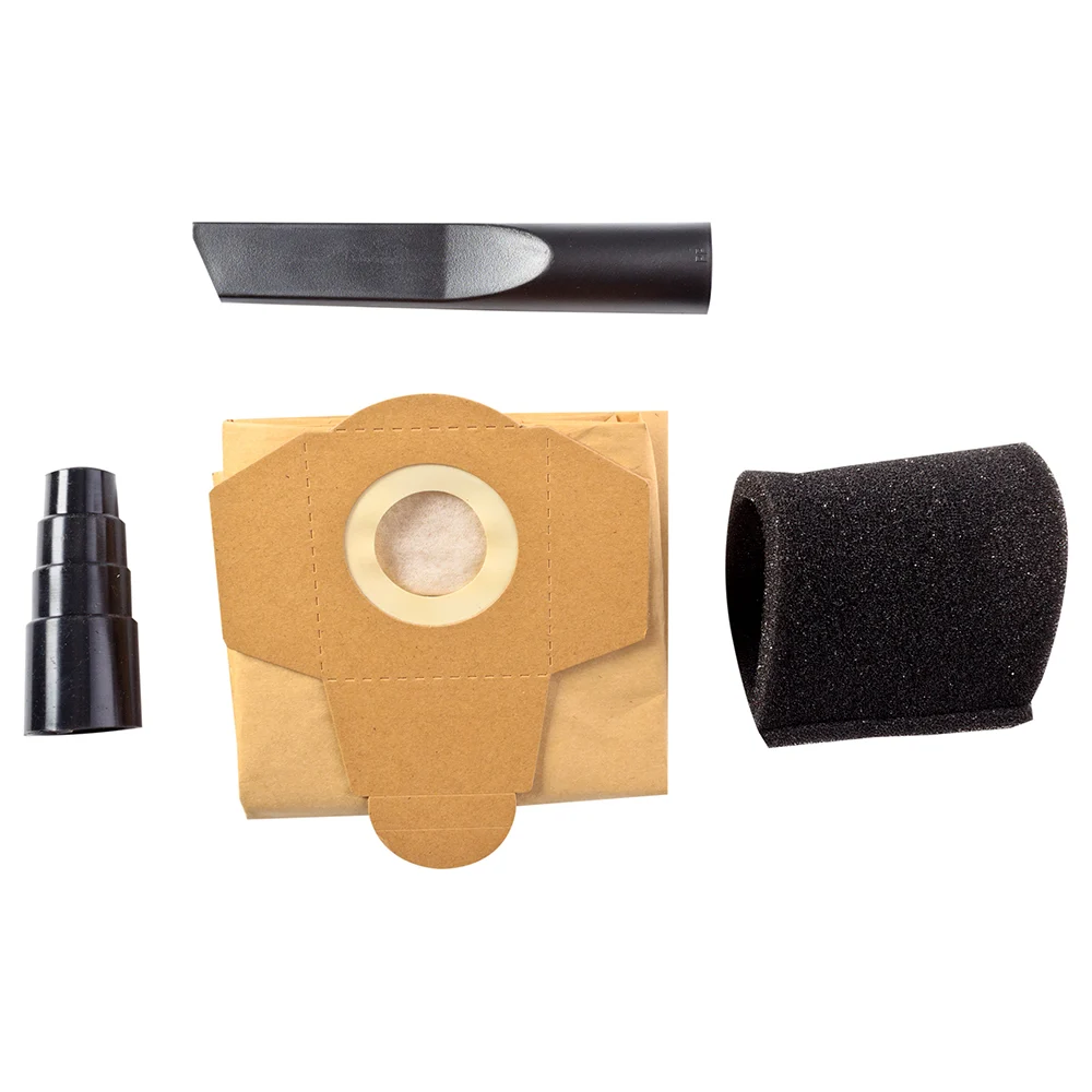 Комплектация Пылесос; Гибкий воздушный шланг; Транспортировочные колёса - 4 шт; Соединительные трубки - 2 шт; Щётка для пола; Щелевая насадка; Адаптер для пылесоса; Бумажный мешок; Фильтр HEPA; Фильтр из вспененного полимера