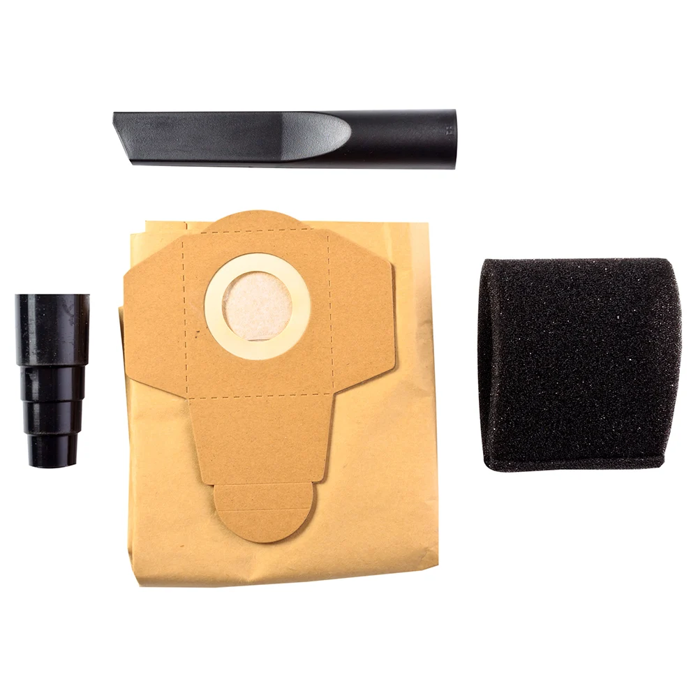 Комплектация Пылесос; Гибкий воздушный шланг; Транспортировочные колёса - 4 шт; Соединительные трубки - 2 шт; Щётка для пола; Щелевая насадка; Адаптер для пылесоса; Бумажный мешок; Фильтр HEPA; Фильтр из вспененного полимера