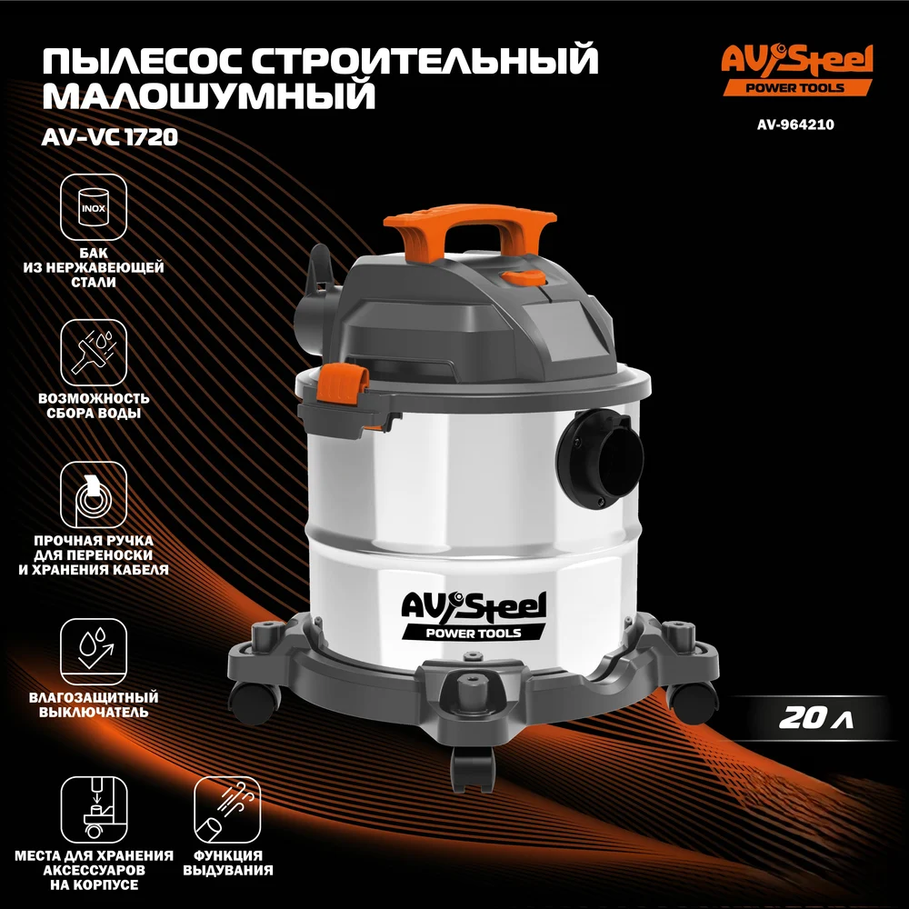 Купить Пылесос строительный AV Steel AV-VC 1720 AV-964210 по лучшей цене с доставкой - интернет магазин №1 в России