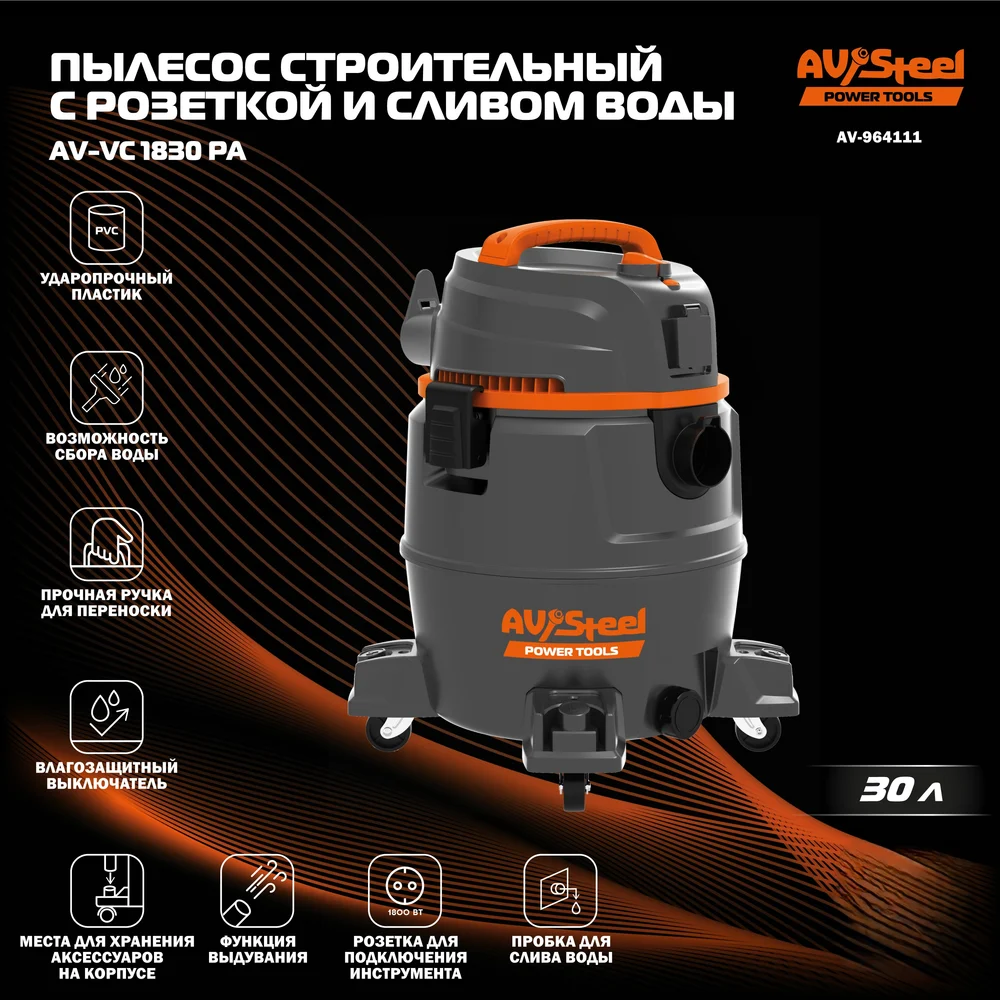 Купить Пылесос строительный AV Steel AV-VC 1830 РА AV-964111 по лучшей цене с доставкой - интернет магазин №1 в России