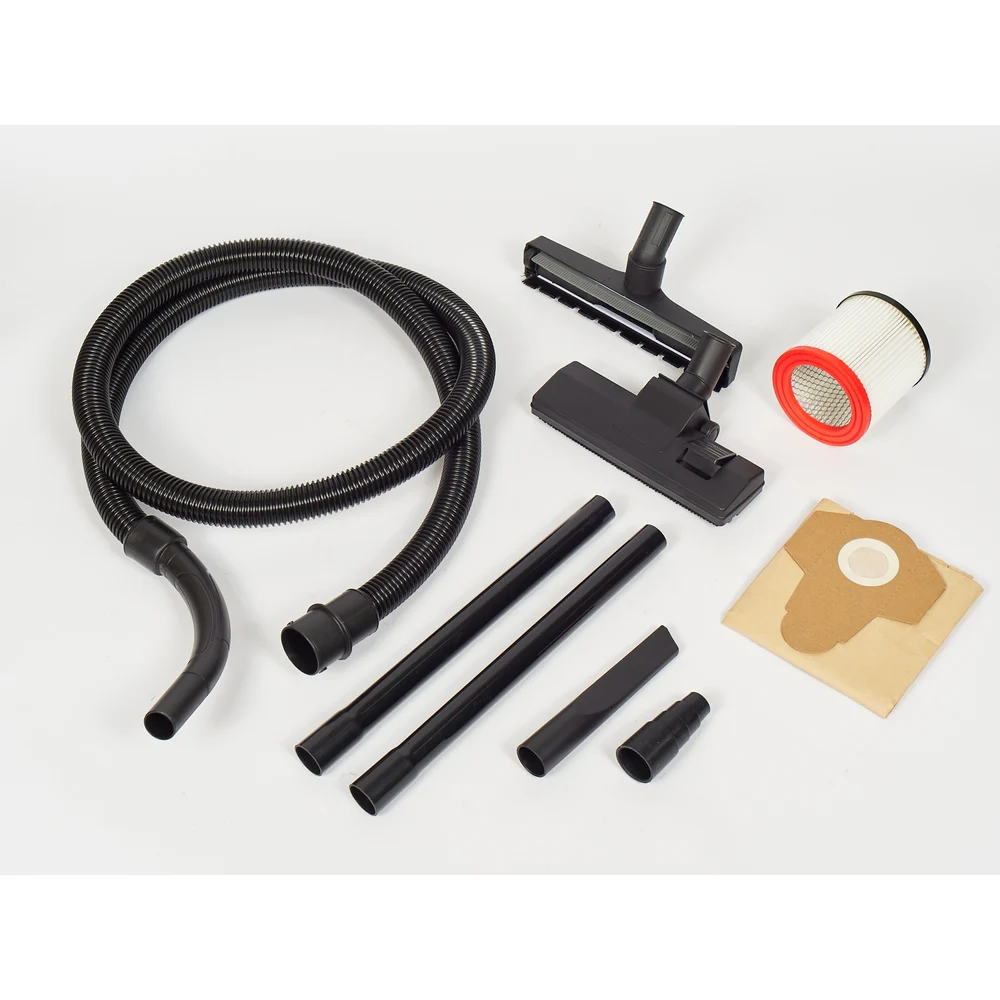 Комплектация Щетка для ковров; Мешок для бумажной пыли; Щелевая насадка; Колесо поворотное (х4) 4; 2 всасывающего шланга длинна 3 метра и 1.5 м 5; Шланг гибкий; НЕРА Фильтр; Насадка для пола