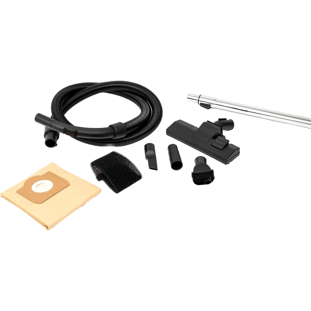 Комплектация Пылесос; Всасывающий шланг; Телескопическое расширение; Напольная насадка; Вентиляционные отверстия; Картриджный фильтр (установлен); Кнопка встряхивания фильтра; Функция воздуходувки; Адаптер для электроинструмента; Фильтр-коллектор; Губчатый фильтр для жидкости; Щетка с круглой щетиной; Инструкция; Упаковка
