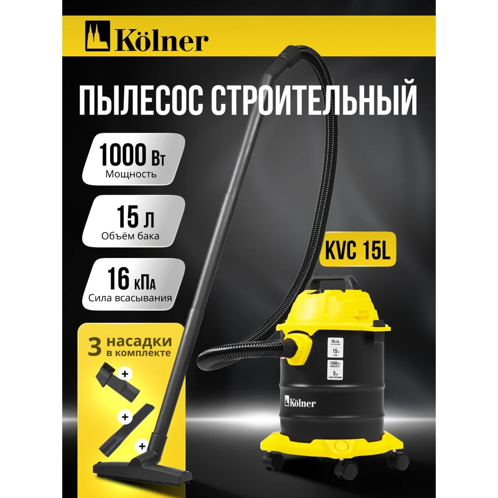 Купить Пылесос строительный Kolner KVC 15L 15л, 16кПа, 1000Вт, 26л/с 8040400066 по лучшей цене с доставкой - интернет магазин №1 в России