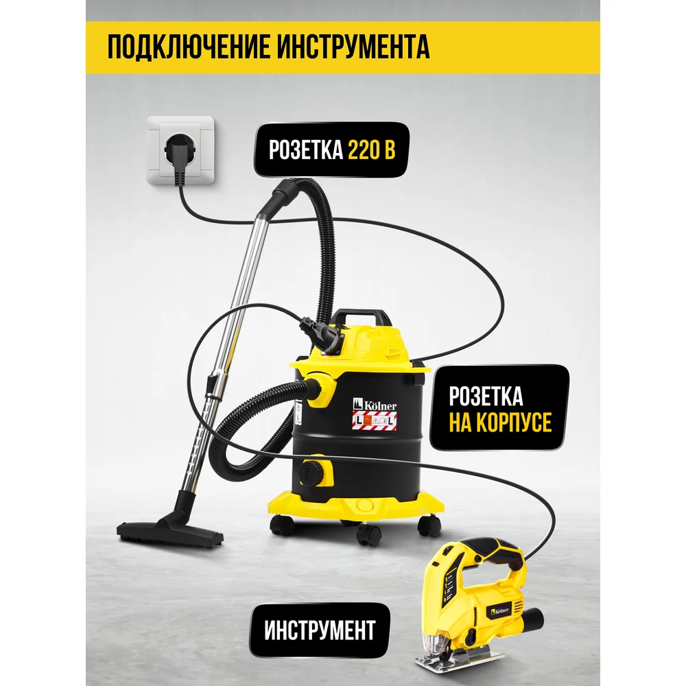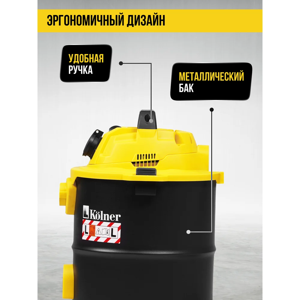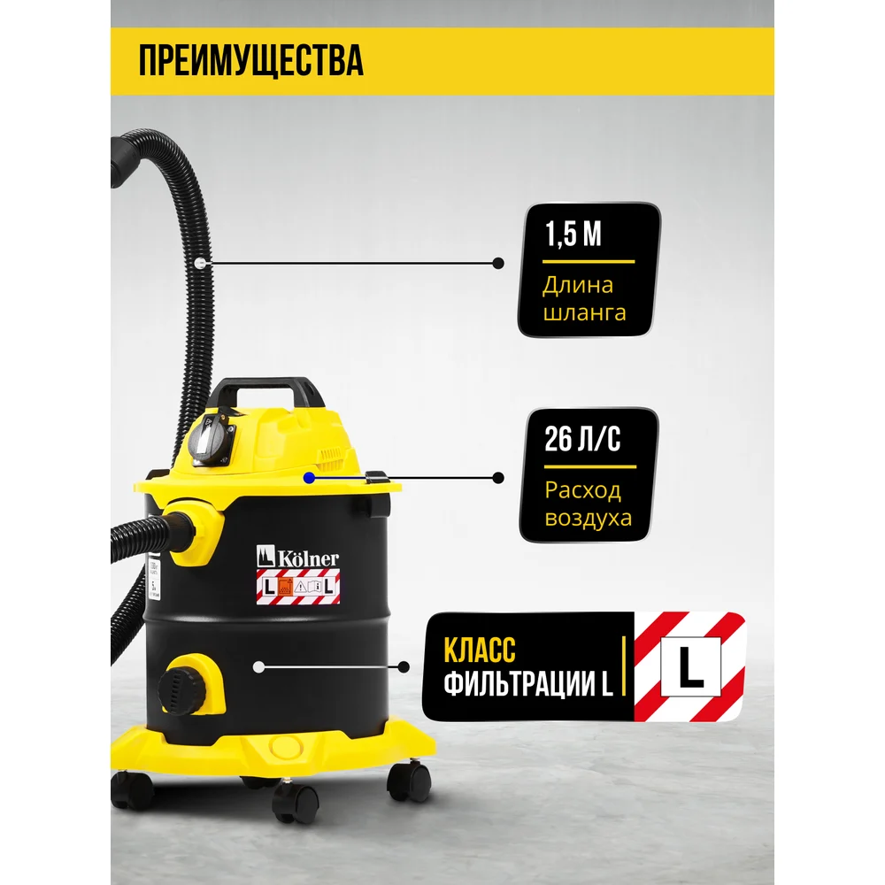 Пылесос строительный Kolner KVC 20L-S 20л, 16кПа, 1200Вт, 26л/с 8040400076