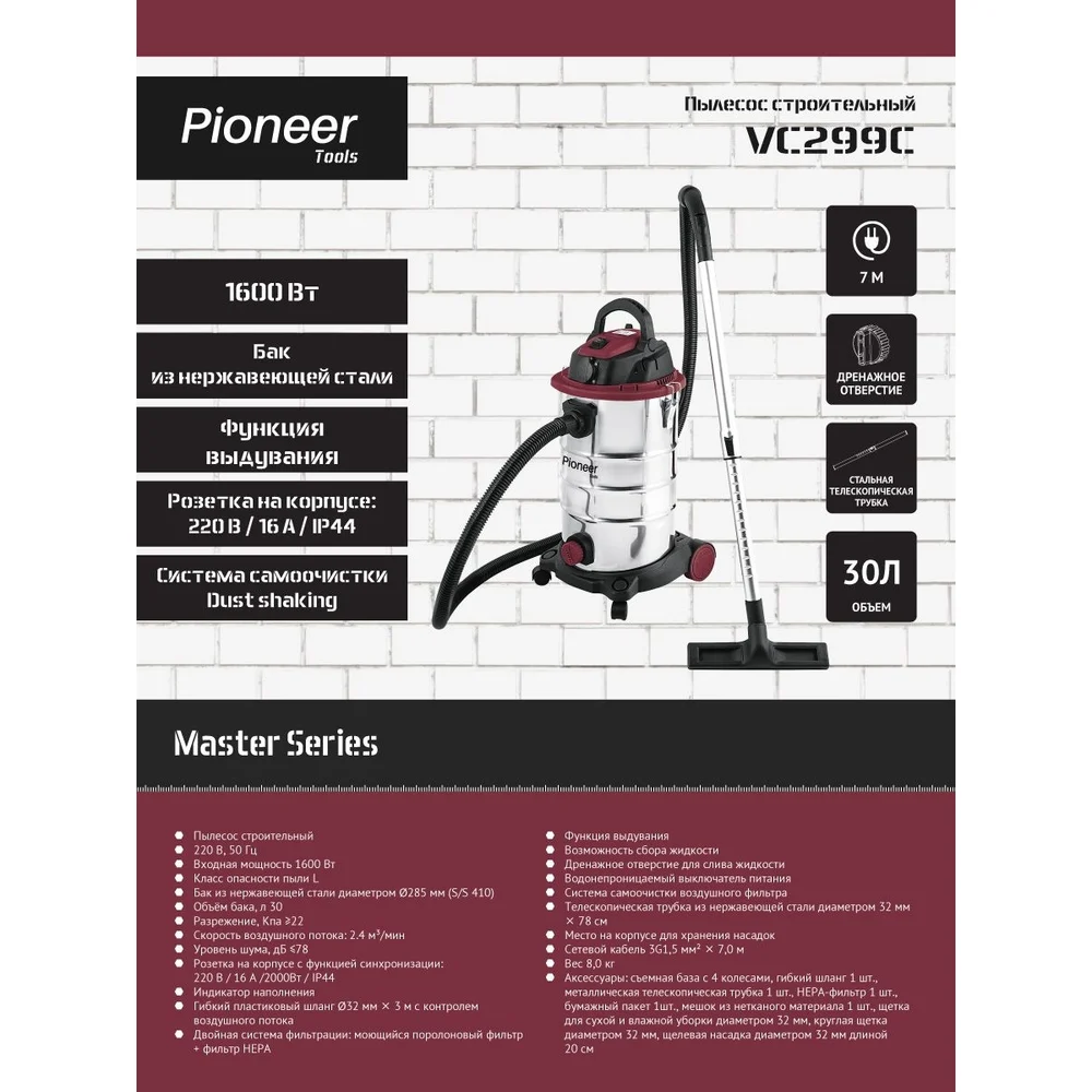 Купить Пылесос строительный Pioneer VC299C по лучшей цене с доставкой - интернет магазин №1 в России