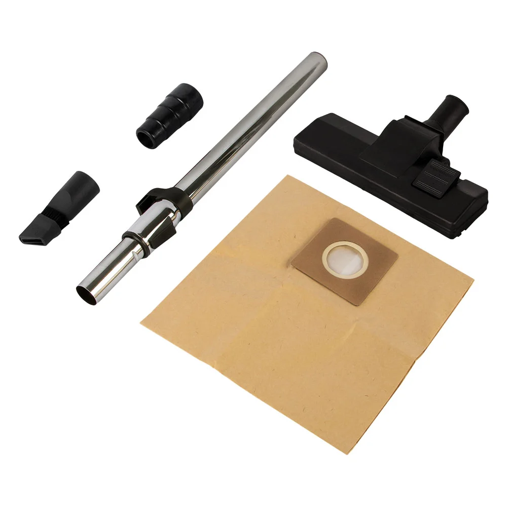 Комплектация Пылесос; Шланг; Трубка телескопическая; Насадка для пола; Насадка комбинированная; Колесо поворотное – 4 шт; Фильтр тряпичный; Фильтр поролоновый; Фильтр мешок бумажный; Адаптер для подключения электроинструмента; Руководство по эксплуатации