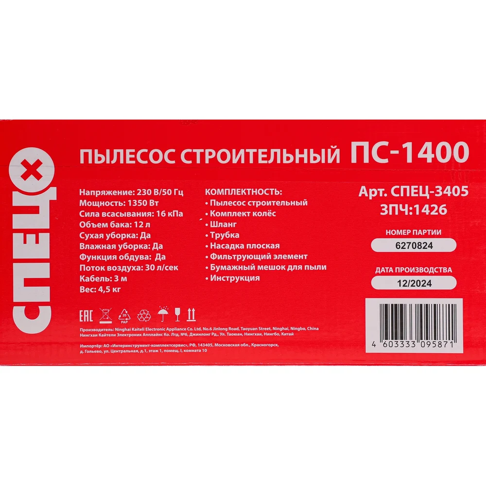 Купить Строительный пылесос Спец ПС-1400 СПЕЦ-3405 по лучшей цене с доставкой - интернет магазин №1 в России