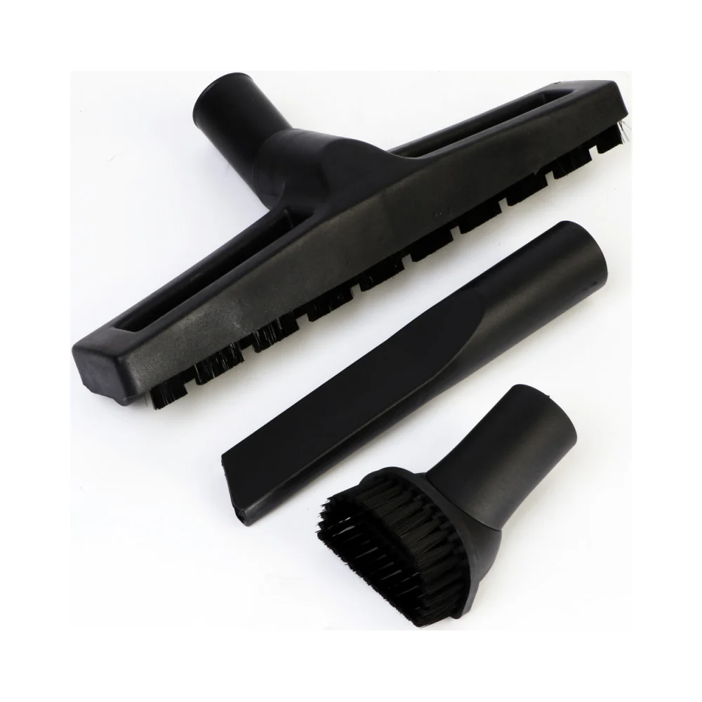 Комплектация Пылесос; Гофрированный шланг 1.5 м; 2 щетки для пола; Щелевая насадка; Телескопическая удлинительная трубка; Бумажный мешок-пылесборник; Тканевый фильтр; Фильтр НЕРА; Моторный фильтр; Поворотная роликовая опора с колесами; Инструкция; Адреса гарантийных мастерских; Упаковка