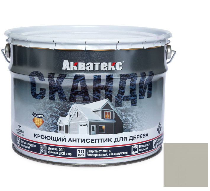 Купить Антисептик акриловый кроющий для дерева Акватекс Сканди полуматовый Альпийское утро 9 л по лучшей цене с доставкой - интернет магазин №1 в России