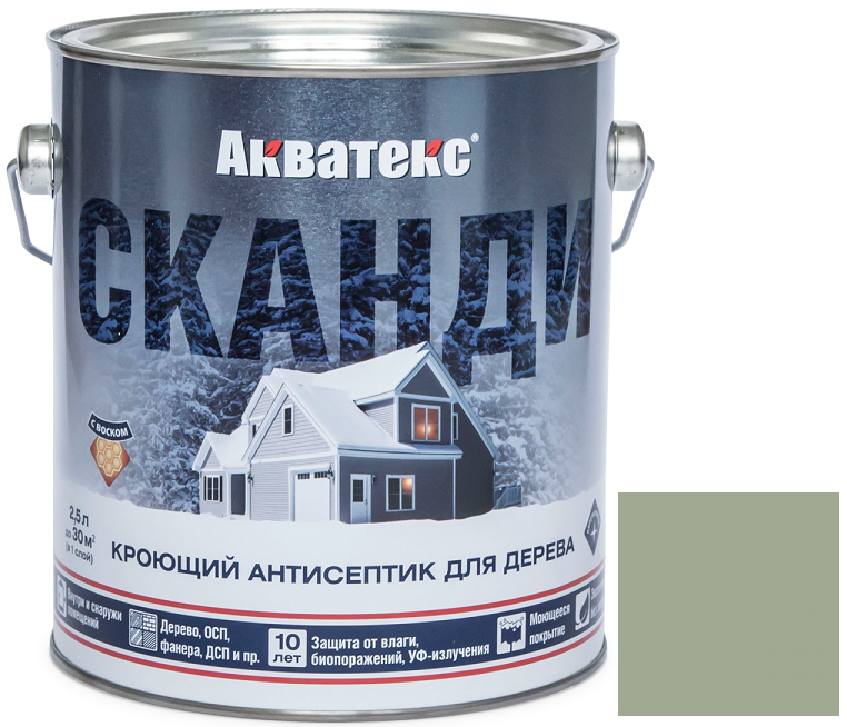Купить Антисептик акриловый кроющий для дерева Акватекс Сканди полуматовый Фьорд 2,5 л по лучшей цене с доставкой - интернет магазин №1 в России