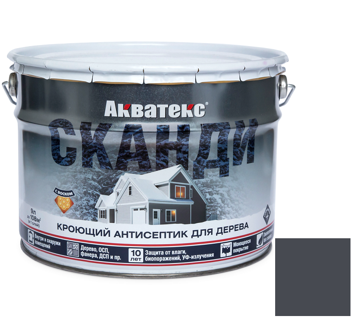 Купить Антисептик акриловый кроющий для дерева Акватекс Сканди полуматовый Графит 9 л по лучшей цене с доставкой - интернет магазин №1 в России