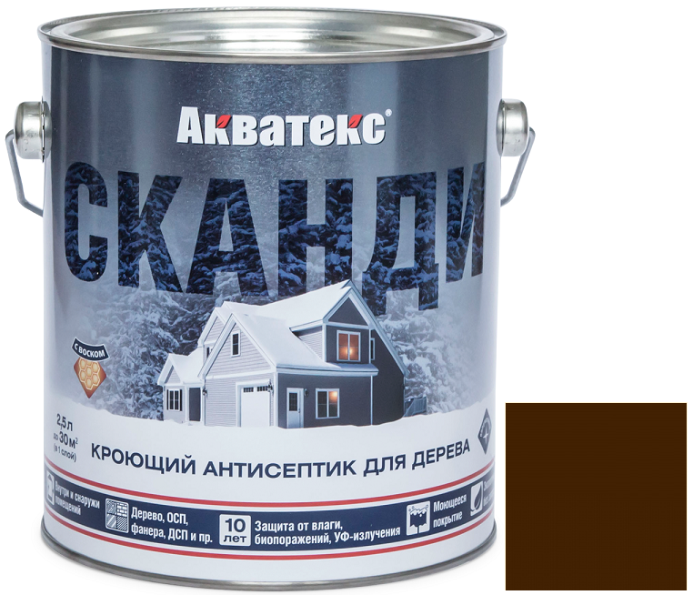 Купить Антисептик акриловый кроющий для дерева Акватекс Сканди полуматовый Лакрица 2,5 л по лучшей цене с доставкой - интернет магазин №1 в России