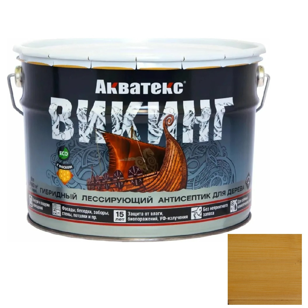 Купить Антисептик для дерева гибридный Акватекс Викинг лессирующий полуматовый Калужница 9 л по лучшей цене с доставкой - интернет магазин №1 в России