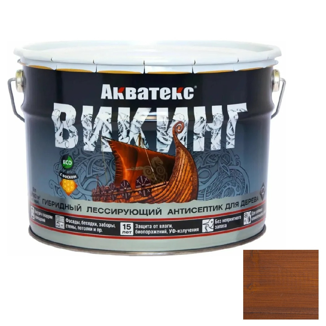 Купить Антисептик для дерева гибридный Акватекс Викинг лессирующий полуматовый Тик 9 л по лучшей цене с доставкой - интернет магазин №1 в России