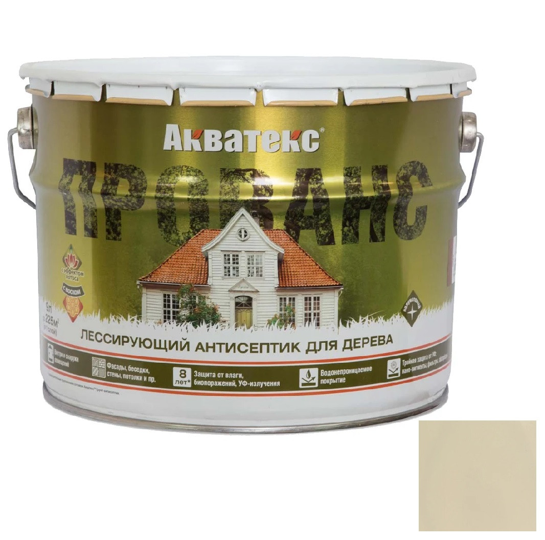 Купить Антисептик для древесины Акватекс Прованс лессирующий полуматовый Ваниль 9 л по лучшей цене с доставкой - интернет магазин №1 в России