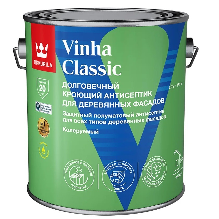 Купить Антисептик кроющий Tikkurila Vinha Classic База VVA полуматовый 2,7 л по лучшей цене с доставкой - интернет магазин №1 в России