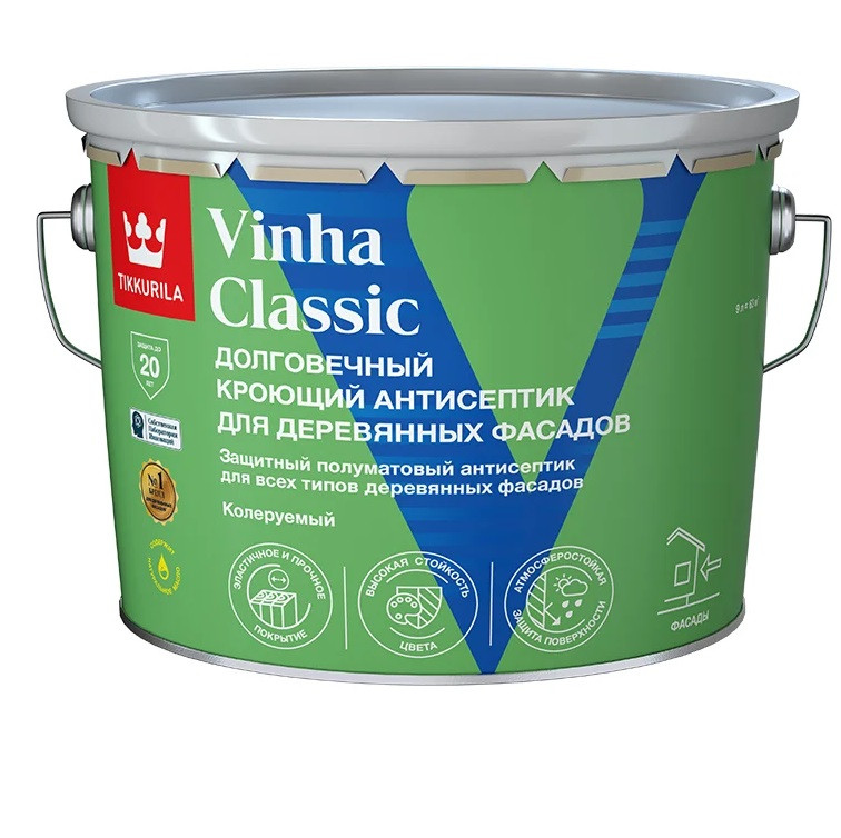 Купить Антисептик кроющий Tikkurila Vinha Classic База VVA полуматовый 9 л по лучшей цене с доставкой - интернет магазин №1 в России