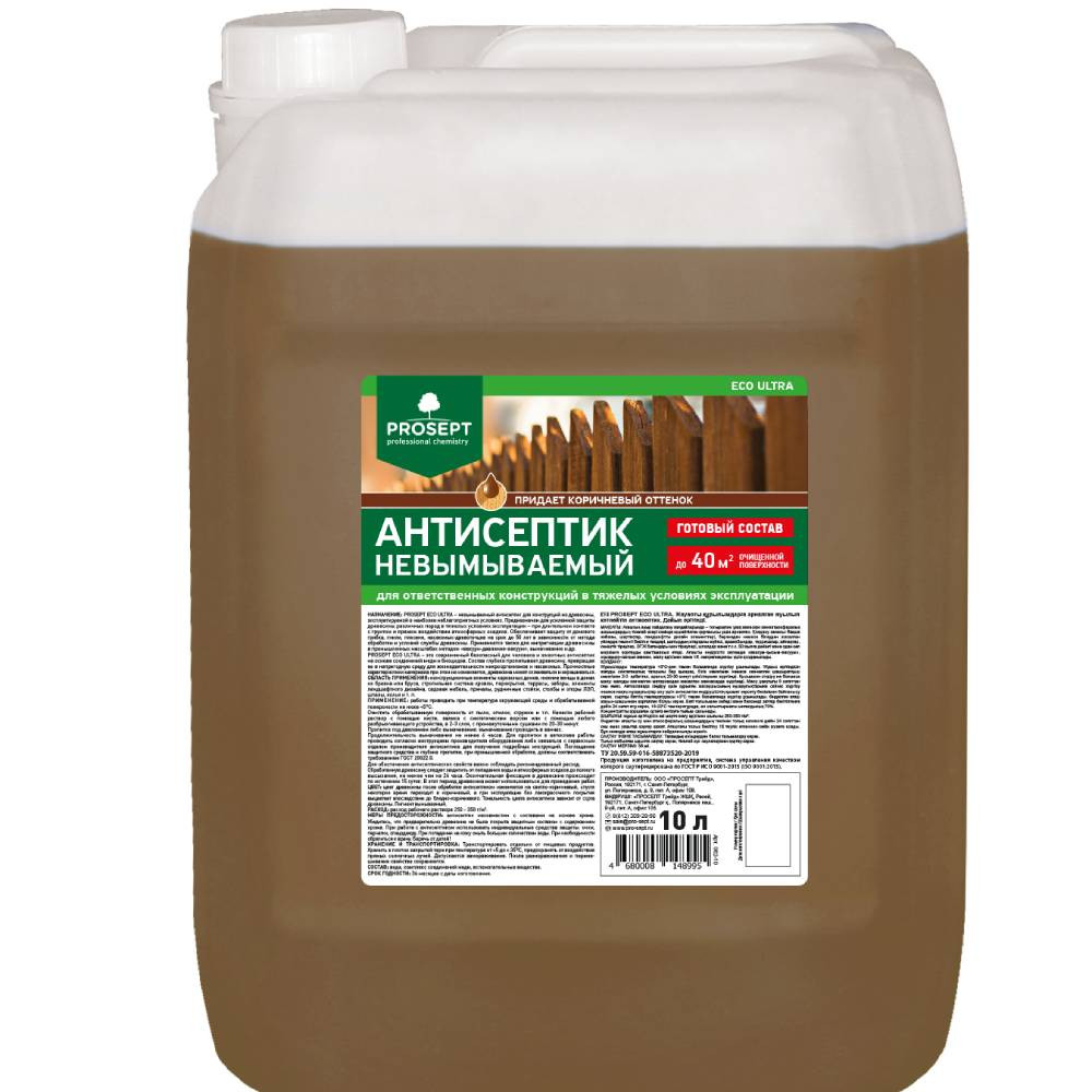 Купить Антисептик невымываемый Prosept Eco Ultra 062-10 коричневый 10 л по лучшей цене с доставкой - интернет магазин №1 в России