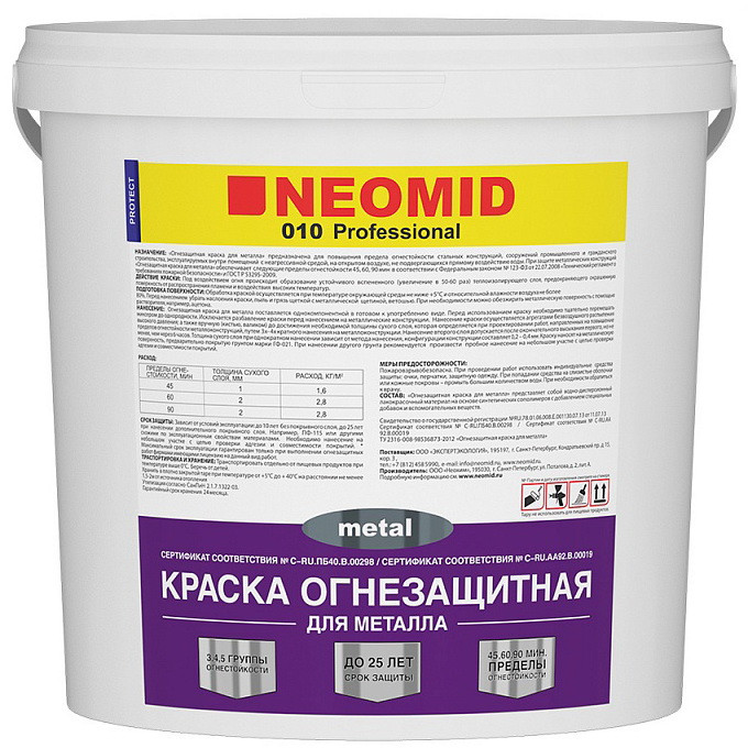 Купить Краска огнезащитная для металла Neomid Professional 010 белая 6 кг по лучшей цене с доставкой - интернет магазин №1 в России