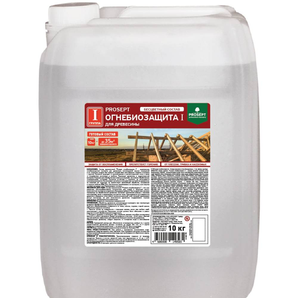Купить Огнебиозащита для древесины Prosept 063-10 1 группа бесцветный 10 кг по лучшей цене с доставкой - интернет магазин №1 в России