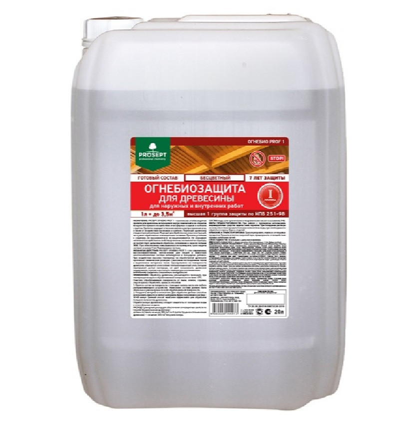 Купить Огнебиозащита для древесины Prosept Огнебио Prof l 1 007-20бц бесцветная 20 л по лучшей цене с доставкой - интернет магазин №1 в России