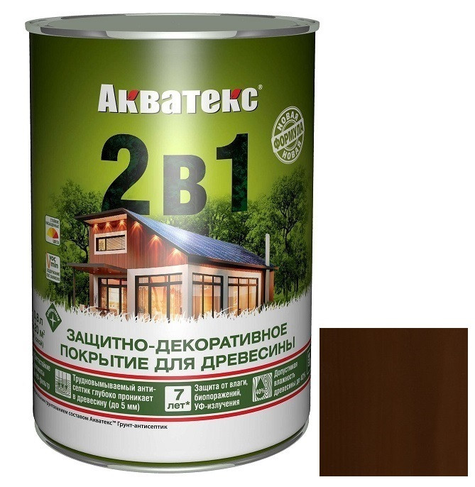 Купить Покрытие алкидное защитно-декоративное для древесины Акватекс 2 в 1 полуматовое Махагон 0,8 л по лучшей цене с доставкой - интернет магазин №1 в России