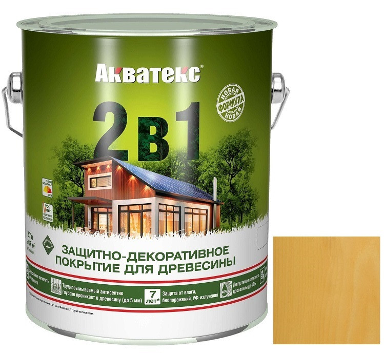 Купить Покрытие алкидное защитно-декоративное для древесины Акватекс 2 в 1 полуматовое Сосна 2,7 л по лучшей цене с доставкой - интернет магазин №1 в России